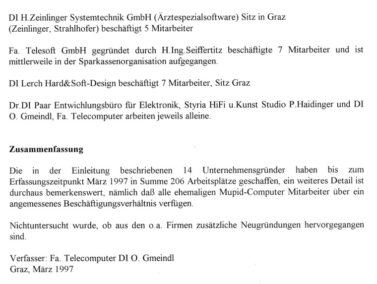 Die Mupid Computer Gesellschaft, Namen der Firmenabkömmlinge, DI O. Gmeindl, März 1997